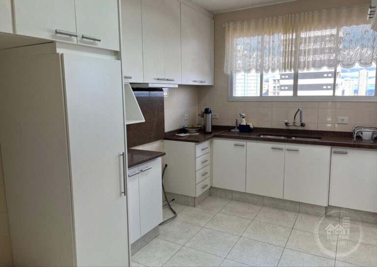 Cozinha com armários planejados, funcional e bem distribuída;