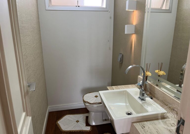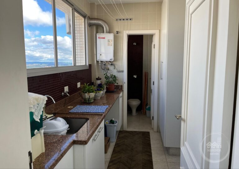 Área de serviço completa, com lavanderia, armário planejado e banheiro;